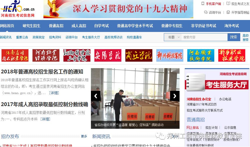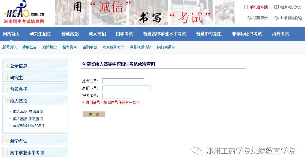 1、登陆河南省招生办公室官方网站,点击“成绩查询”
